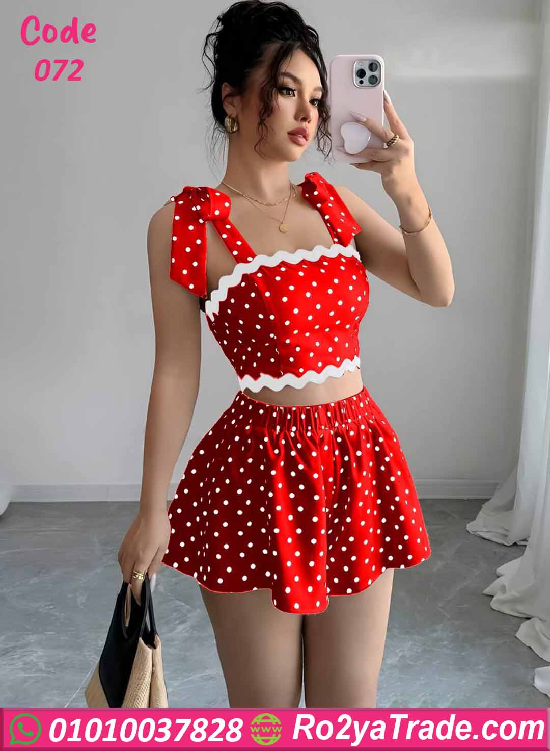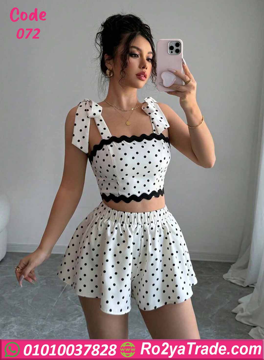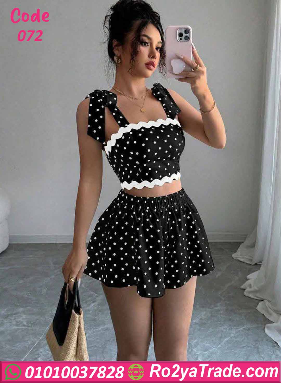 التصميم المرح بالنقط (Polka Dots) بيدي طابع كلاسيك كيوت مستوحى من الستايل الريترو، وبيليق على البنات اللي بتحب اللوك البناتي الجذاب.