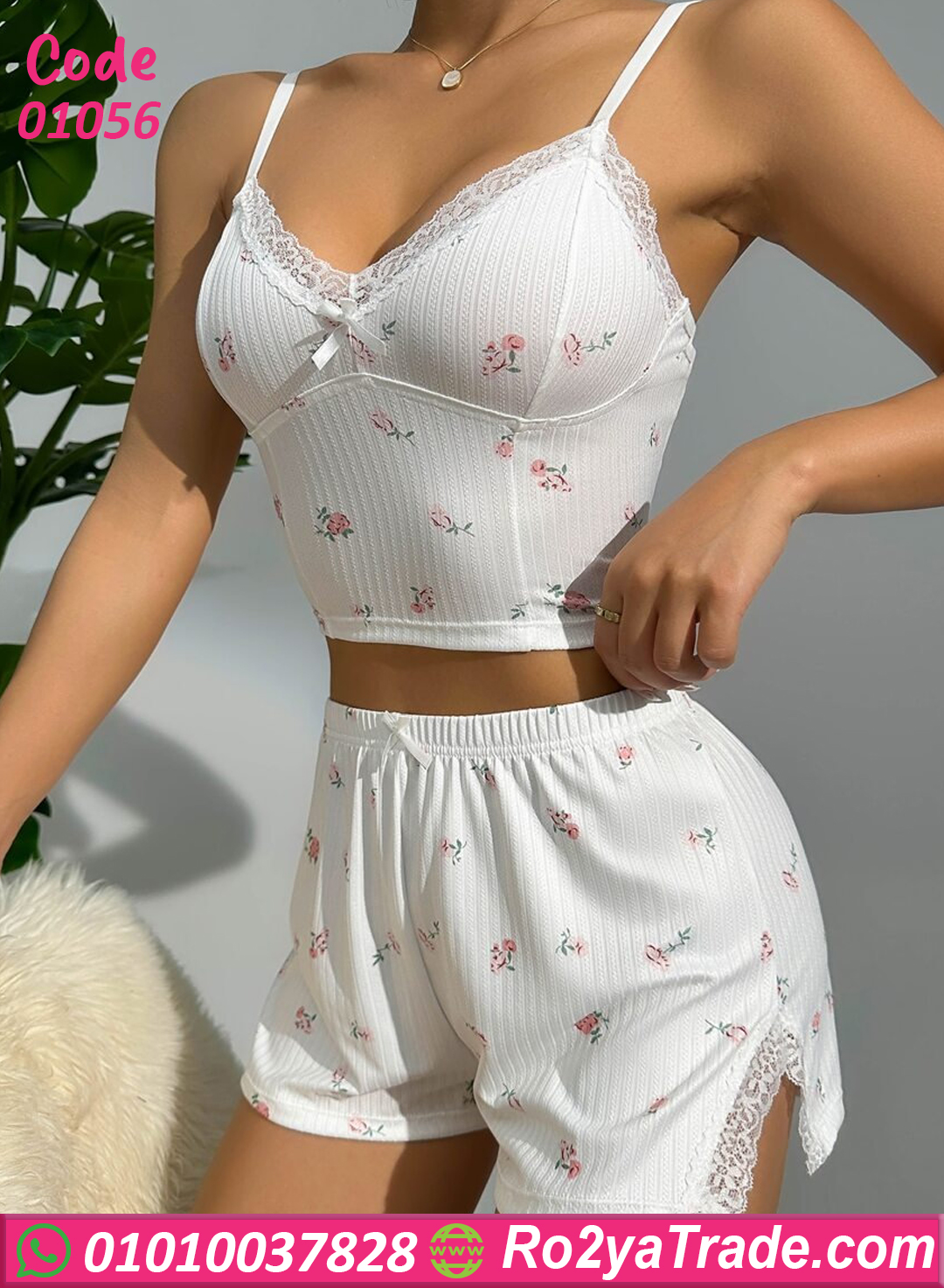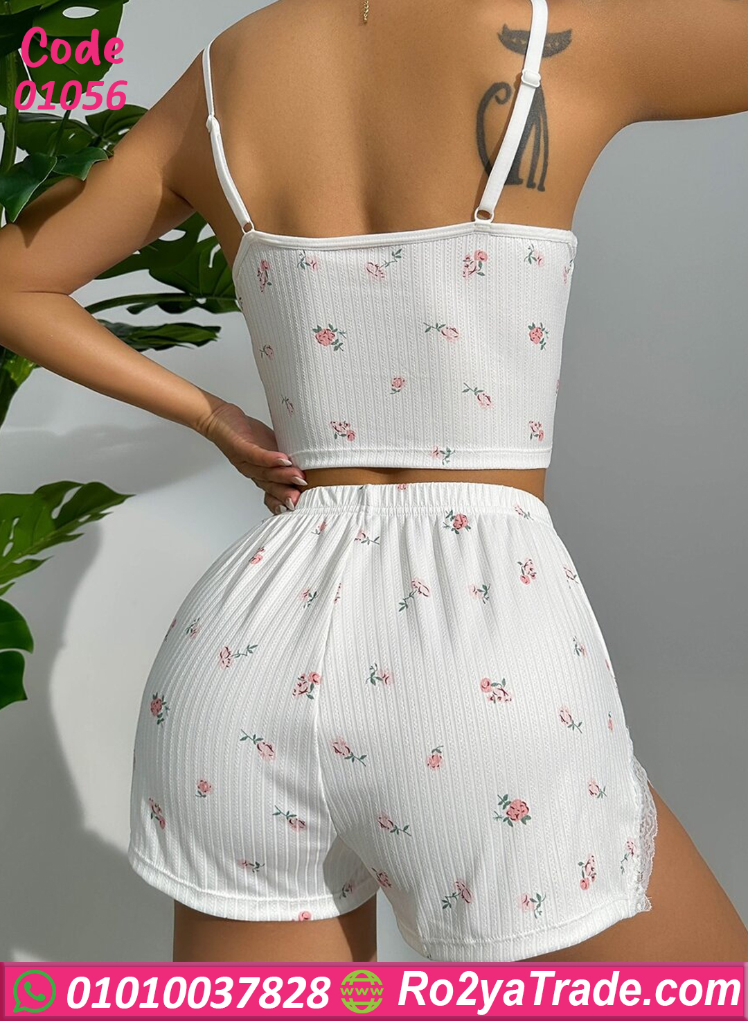 طقم هوت شورت صيفي بخامة قطن ناعمة ومرنة بنقشة ورد رقيقة، مناسب للبنات في البيت