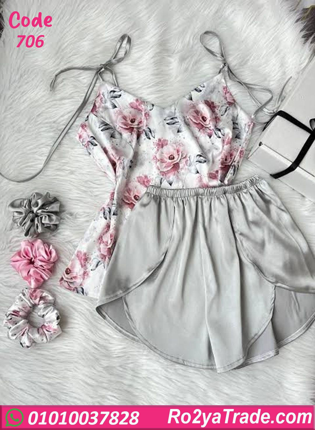 هوت شورت صيفي كود 706 بطقم مكوّن من توب حمالات رفيعة قابل للربط مع شورت واسع بقصة مريحة،