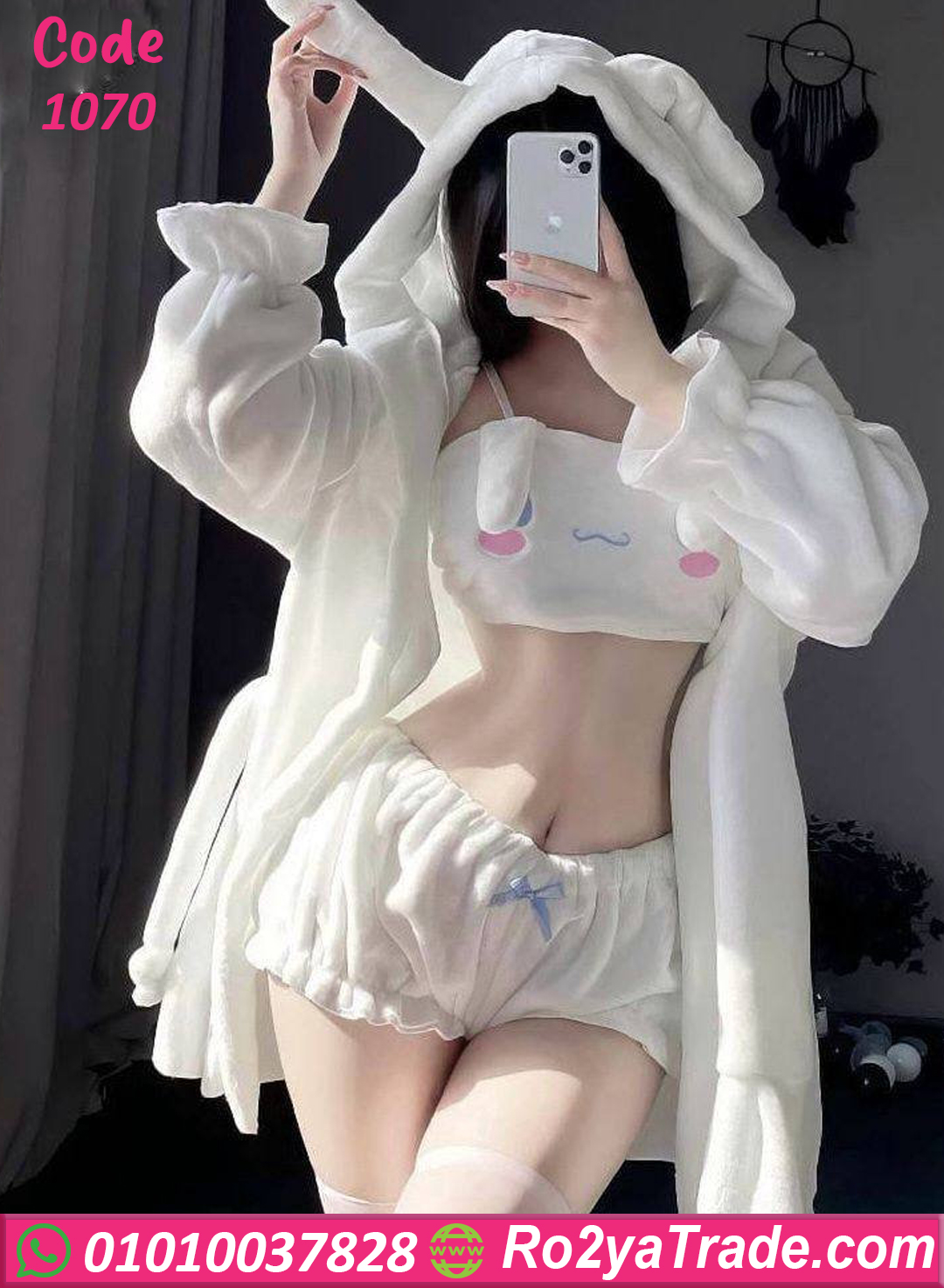 الروب بييجي بخامة ناعمة نفس خامة الطقم، وعليه كابيشو بكوالتي عالي يدي للستايل شكل كرتوني جميل ومختلف عن أي طقم بيت تاني.